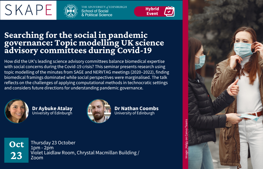 The Covid-19 pandemic challenged pandemic preparedness strategy. Decades of planning were abandoned as governments followed the lead of Chinese authorities in implementing lockdowns, social distancing, and other novel non-pharmaceutical interventions to prevent healthcare systems being overwhelmed. Among the criticisms of governmental responses to Covid-19 include the suggestion that they tended towards a narrow biomedical scientism, eschewing cost-benefit analyses, excluding social concerns, and inviting no input by social scientists. However, there remains little systematic evidence to support these contentions. We put these claims to the test by applying Latent Dirichlet Allocation (LDA) topic modelling to the minutes of 168 meetings held between 2020 and 2022 by two of the UK’s most influential science advisory committees during the pandemic: the Science Advisory Group on Emergencies (SAGE) and the New and Emerging Respiratory Virus Threats Advisory Group (NERTAG). In a result exceeding our expectations, we find that the LDA model struggled to identify a distinct set of social considerations within these discussions, even after manually optimising the number of topics in an effort to surface such themes. We theorise the dominance of biomedical topics in the committees’ discussions as a self-reinforcing effect of framing and cognition, supporting criticisms that SAGE and related committees operated as an ‘epistemic bubble’ in which alternative approaches to making sense of the pandemic were marginalised in favour of epidemiological modelling. We conclude with methodological reflections on the limitations of applying topic modelling in highly technocratic contexts as well as considerations of future research directions for the project.
